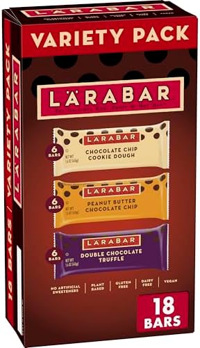 CONTAINS: One 28.8 oz big cardboard box of Larabar Chocolate Variety Pack, Gluten Free Vegan Fruit and Nut Bars, 18 Ct; Perfect for instant snacking