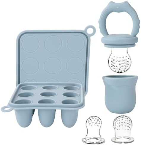 Silicone Food Feeder Set for Infants- Simplify meal prep with our Silicone Baby Food Freezer Tray. Store breast milk, purees, and smoothies easily with the included lid to ensure freshness and safety for your baby, and also make your freezer mess-free.