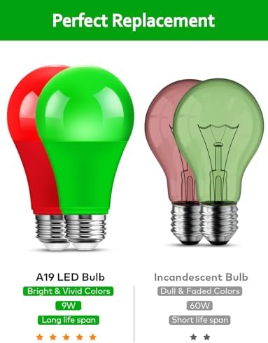 [Energy Efficient & Eco-Friendly]: 9W Red LED bulbs and Green Led Bulb are an energy-saving replacement for 60W incandescent bulbs, helping you cut down on electricity bills by up to 85%. Enjoy pure red lighting green lighting without the high electric bills