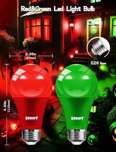 [Christmas Light Bulb]: Red christmas bulbs green christmas bulbs - colored light bulb, perfect for setting the mood during holidays like Christmas, Halloween, and Valentine’s Day. Add a pop of vibrant color to your porch, patio, or any indoor space to enhance your festive decorations