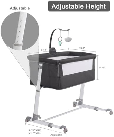 HEIGHT ADJUSTABLE - This bedside crib has 6 position adjustment. So you can snug it up to beds of various heights, as well as a couch or other transitional space. It makes your infant is by your side.