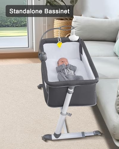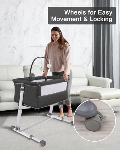 MOBILE TOYS & MUSIC BOX - Yacul Bedside Sleeper Crib has built-in music box. There are 8 melodies suitable for newborns will be played on a loop, smoothing the baby and keep her/him entertained.