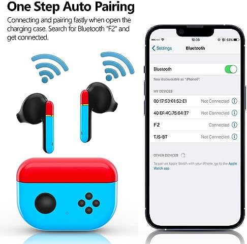 Fast Pairing & Wide Compatibility:F2 wireless earbuds with Bluetooth 5.0 version offers more stable connection and extended connection range. Open the charging case for the first connection, find the name of "F2" on your device to connect the earbuds. After the first connection, it will automatically connect once you open and take off the earbuds next time. These bluetooth earphones are compatible with most Bluetooth-enabled devices, such as for iOs, Android, tablet, notebook etc