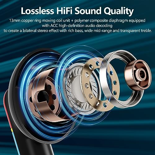 Stereo Sound and Low Delay:With 13mm speakers and the latest chips, our Bluetooth headphones can deliver powerful bass, clear mids and bright treble to immerse you into music. The built-in mic in each bluetooth earphones utilizes call noise cancellation to ensure clear and realistic sound. It will allow you to enjoy high-quality conversations anytime, anywhere,bings you an unprecedented new experience
