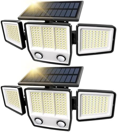 【3000LM & 3 Heads Solar Security Lights】: The solar flood lights can adjust the 3 heads with 236 super bright LEDs can produce up 3000lm brightness and 7000K cool white light; And provide a lighting area of up to 1600 square feet--Dual Motion Sensor Outdoor Lights, gives you with extra brightness and larger visible area.