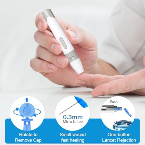 💉 Virtually Painless 33G Lancet & Smart Blood Draw Ultra-fine 33G needle (40% thinner than standard) with 5-depth adjustable lancing device reduces pain and scarring. Micro-siphon tech requires only 0.7μL blood—gentle for sensitive skin.