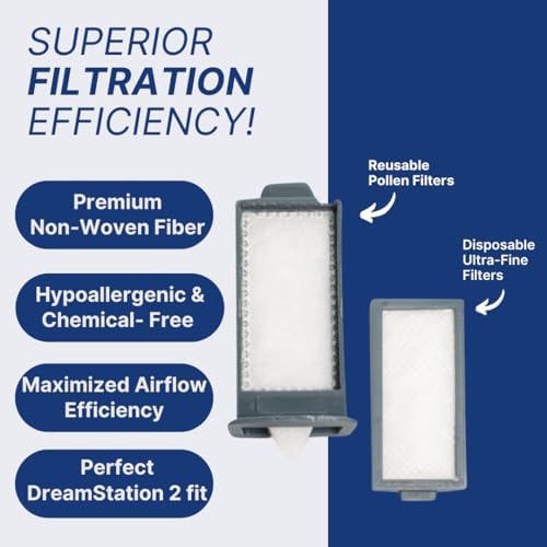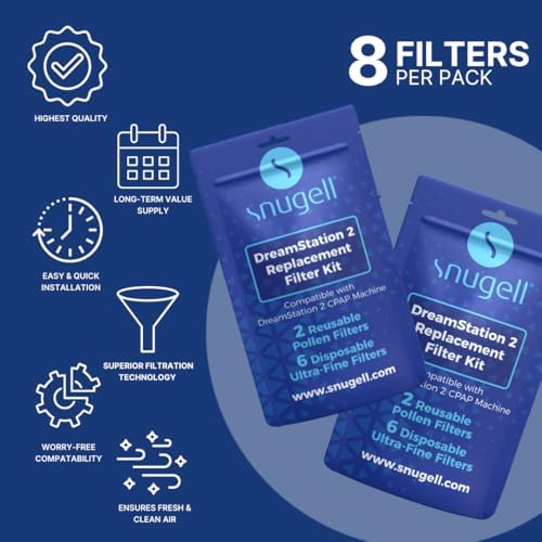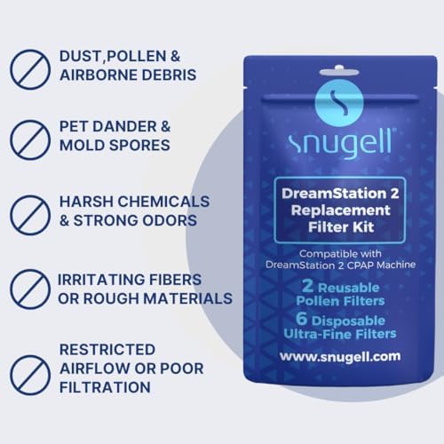 Breathe Fresh, Clean Air Nightly: Enhance your CPAP therapy with Snugell’s DreamStation 2 Replacement Filter Kit. This comprehensive kit includes 4 Reusable filters to block dust and pollen, plus 20 Disposable Ultra-fine filters designed to capture smaller particles and neutralize unwanted odors. Experience a cleaner, fresher airflow every night for healthier sleep.