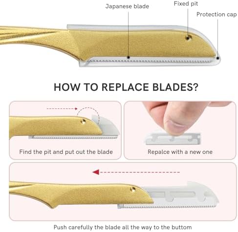 SAFE REPLACEABLE FACE RAZORS: This face razor kit has 1pcs of eyebrow scraper, and extra 4pcs replacement blades included for better performance, 1 second plug-in design, fast and won't hurt yourself.