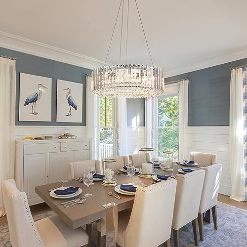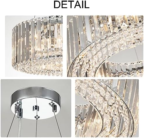 DESIGN - The main body of this 6-light round crystal chandelier is a ring crystal with a diameter of 19.7in (50cm). The light bulb is positioned in the ring crystal, which reflects a particularly beautiful and soft light through the bright crystal. Three transparent two-core wires connect the light to the ceiling plate. Modern Luxury style, elegant and sophisticated.