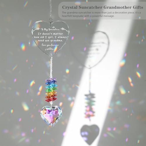 High-Quality Grandma Birthday Gifts: The shining hanging suncatcher is made of premium clear and well-cut K9 crystals. The Heart-shaped crystal prisms combined with chains are colorful and shining. Each crystal presents a beautiful and unique color. They will create the most beautiful reflections when the sunlight or any other kind of light hits them.