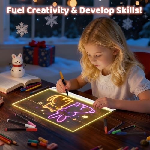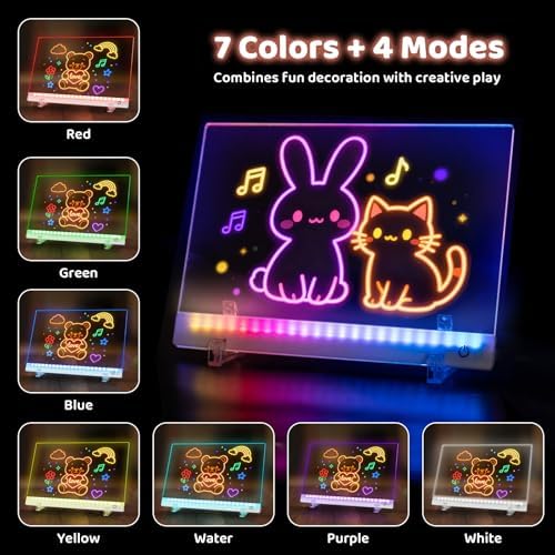 Dynamic Lighting Illuminates Creativity: HVMVNV led drawing board for kids features 7 vibrant RGB light options and 4 dynamic modes—including rapid flash, slow flash, breathing, and rainbow wave—turning every drawing session into a dazzling color adventure. Kids can choose their favorite light effects or cycle through the entire spectrum to bring their artwork to life.