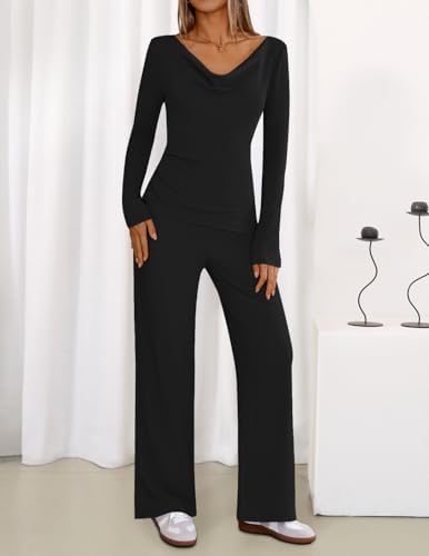 Elegant Top & Flowy Pants: This set features a cowl neck and asymmetrical cut for a modern, flattering silhouette that keeps you warm and chic. The relaxed wide-leg design includes an adjustable drawstring and side pockets, ensuring both comfort and effortless style.