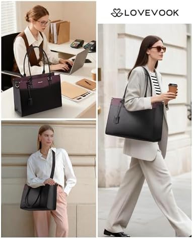 【Three Ways to Carry】Adapt your Lovevook bag to any situation. The detachable strap allows this laptop tote bag to be carried as a hand tote bag for women work, a comfortable shoulder bag, or a hands-free crossbody. Explore the versatility of Lovevook totes designed for the modern woman.