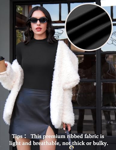 【Premium Fabric】The mock turtleneck womens top is made of 90% Polyester & 10% Spandex. This premium ribbed fabric is light and breathable, not thick or bulky. It is comfortable and skin-friendly, smooth to the touch and elastic.