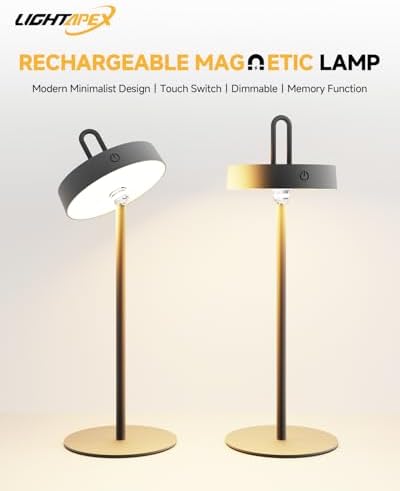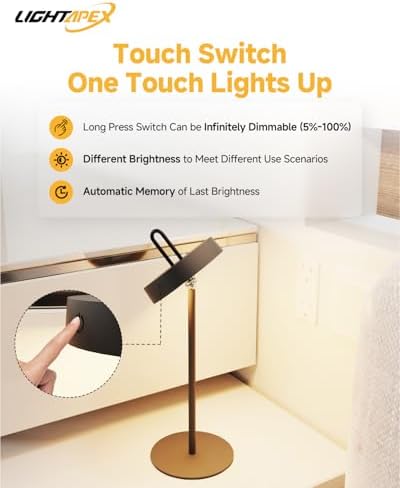 Cordless & Rechargeable: Crafted from premium metal, Lightapex LED cordless table lamp features a built-in 5000mAh battery with overcharge protection, freeing you from wire limitations.