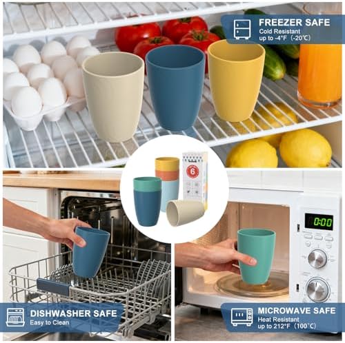 PREMIUM WHEAT STRAW CUPS: Crafted from wheat straw fiber, Perlapoc's 16oz drinking cups are BPA-free, non-toxic, food-grade and built to last. It is a good alternative to glass. Reusable and designed with your family's health in mind - safety and durability in daily use. Ideal for people of all ages, especially kids and the elderly.