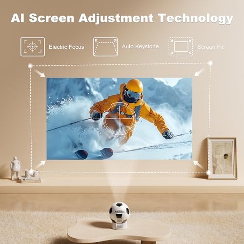 【Instant Clarity & Smart Adjustment】Set up in seconds thanks to digital focus, auto vertical keystone correction (±15°) and a 50%–100% zoom range. The projector with WiFi and Bluetooth instantly produces a sharp, perfectly aligned image—whether placed in front, to the side, or mounted on the ceiling. Enjoy movies and videos effortlessly with a single click and immerse yourself in a true home-theater experience anytime