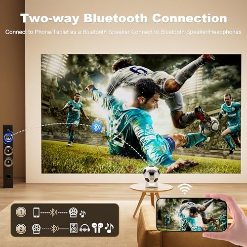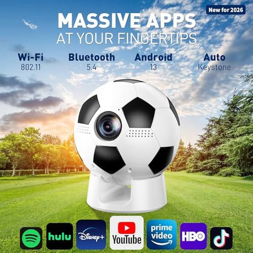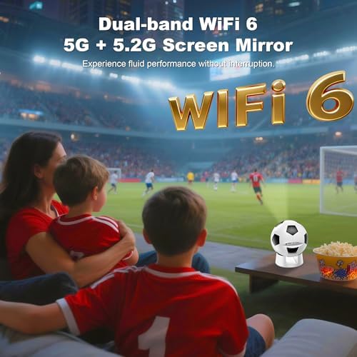 【Smart Soccer-Designed Projector with Built-In OS】Bring stadium energy straight to your home theater with this uniquely designed soccer-ball-inspired smart projector. Powered by the latest Android 13 system, the smart projector offers a fully independent smart experience—no extra devices needed. Browse and download over 10,000 streaming apps. Access a massive library of 500,000+ movies and TV episodes anytime. Note: Please connect the remote via Bluetooth before using the projector