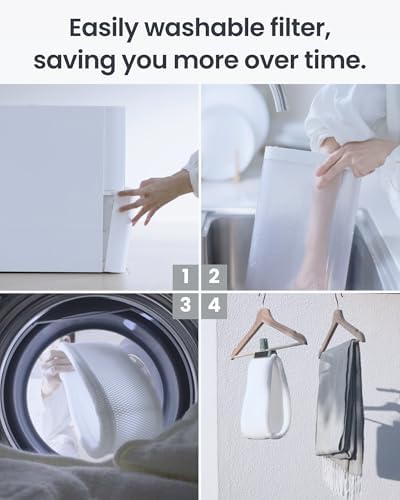 Reusable, Washable Filter with Auto-Dry Tech: Our evaporative humidifier features a revolutionary filter that self-dries after use—extending its lifespan and reducing maintenance. (Filter ASIN: B0DB7DCMD8)