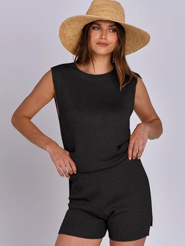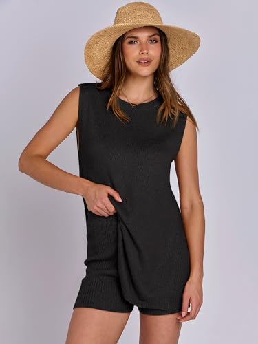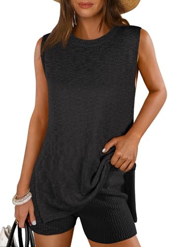 Features - Women's 2 Piece Outfits, sleeveless, knitted. This women's knitted set perfect for daily wear, vacation, beach.