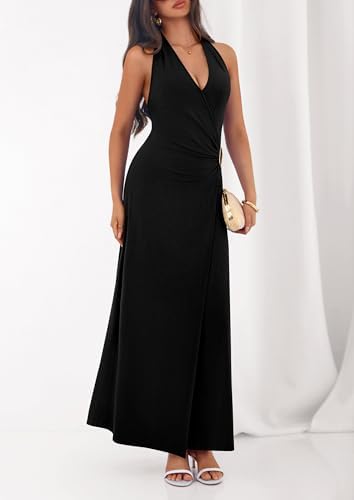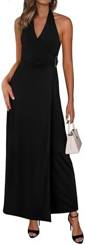 V Neck Halter Dresses For Women/Holiday Dresses For Women/Birthday Dresses For Women/Cocktail Dresses For Women/Semi Formal Dresses For Women/Dresses For Women 2026 Elegant Classy/Sleeveless Dress For Women/Backless Slip Dress/Midi Dresses For Women