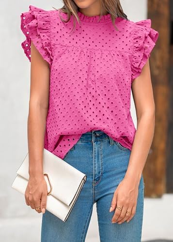 Soft And Comfy Fabric - The Going Out Tops Is Made Of Breathable Eyelet Lace Fabric, Which Is Ideal Piece For Summer. Loose Fit Cut Makes The Plain Tees Suitable For Most Figures