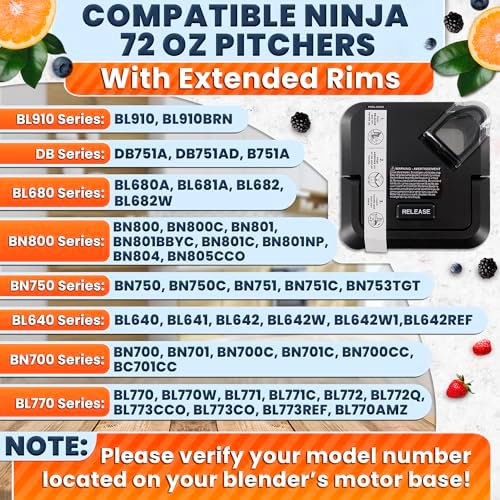 Exact Blend Lid Replacement: This Ninja blender replacement lid is made to fit only the new 72 OZ pitcher with the rim extension design and is not compatible with earlier lid or jar styles