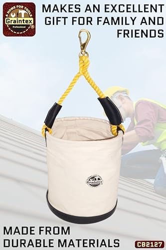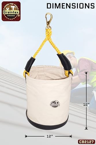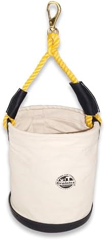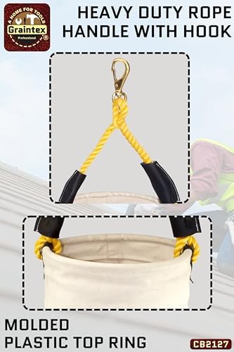 Main pocket for nuts and bolts, heavy duty rope handle with swivel snap hook
