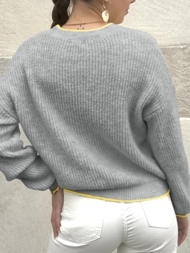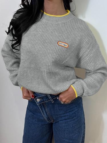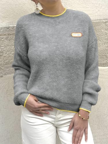 Sweater Chic Design: Lightweight sweaters for women This pullover sweater features a crew neck design for a relaxed, casual fit Its solid color base is enhanced by a chic contrast piping trim that adds a subtle but stylish detail to the overall look