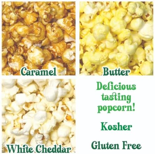 6 ounces White Cheddar Popcorn for the cheesy fans and Butter Popcorn for the Classic Flavor Lovers