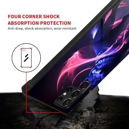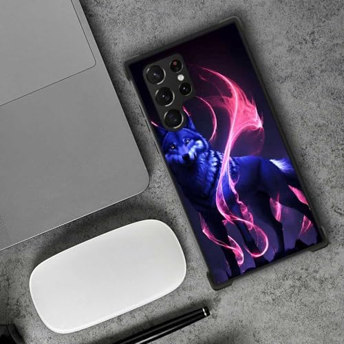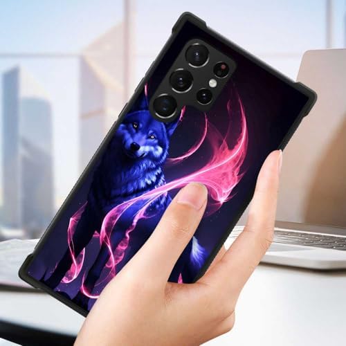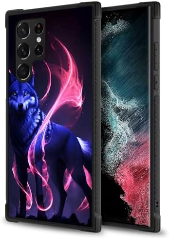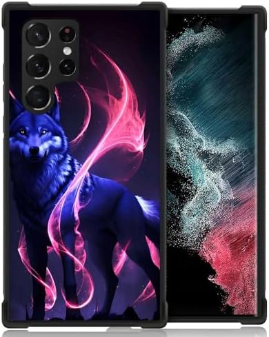 Goodsprout Compatible with Samsung Galaxy S23 Ultra Case,Pink Flame Blue Wolf Amazing Pattern Design Shockproof Anti-Scratch Hard PC Back Case for Samsung Galaxy S23 Ultra Case