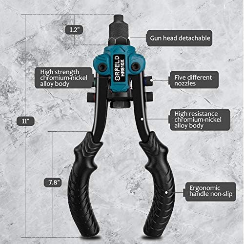 VERSATILE APPLICATION: Professional-grade rivet gun designed for metal work, automotive repairs, gutter installation, and general construction tasks