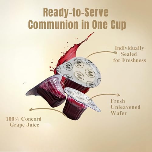 Ready-to-Serve Convenience Each pre-filled communion cup contains 100% Concord grape juice and a fresh, unleavened wafer — individually sealed for freshness and purity