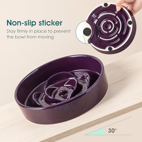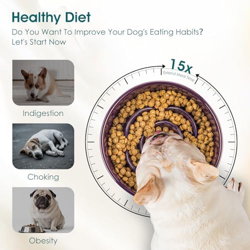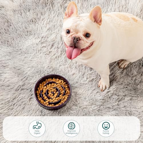 4X Heavier Than Plastic: Made of sturdy ceramic (1.2 LB, 4x heavier than plastic), it prevents tipping and spills for mess-free dining. The bottom of the ceramic slow feeder dog bowl with non-skip stickers keeps the bowl firmly in place. A Clean solution for playful eaters!