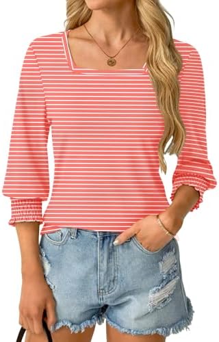 Square Neck Women Tops: flattering square neck with showcases your collarbone and complements necklaces. Solid/ Floral Print shirts great for vacation, office, home, daily wear, outgoing, street and more occasions