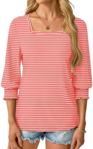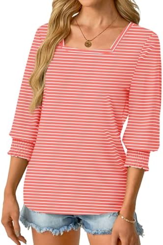 Soft Stretchy Fabric: 3/4 length sleeve t shirts for women is made comfortable fabric, which is breathable, skin-friendly. The lightweight top soft to wear, makes elegant look