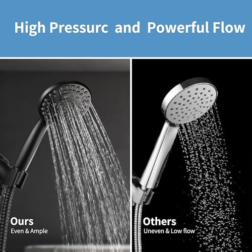 【High Pressure Shower Head with Handheld】The self - flushing silicone nozzles automatically remove hard water deposits, meaning no more clogged shower heads. You can easily detach the 6 - foot stainless - steel hose to clean the shower glass, bathtub corners