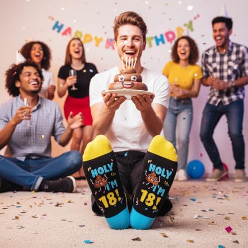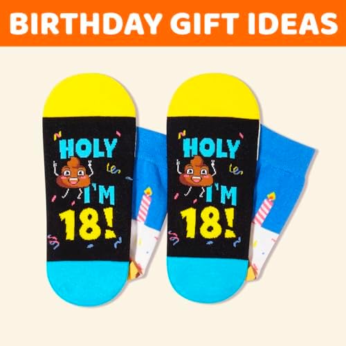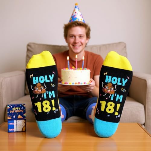 BIRTHDAY GIFTS: These socks feature a cake and candle design on top, while the bottom is sewn with a hilarious hidden message: "HOLY I'M 18!". They make cool 18th birthday gifts