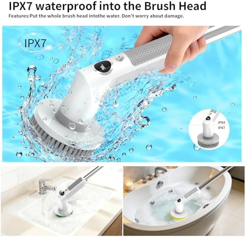 【IPX7 Waterproof & Durable Bristles】The Waterproof Bathroom Cleaning Brush features IPX7 waterproof rating—you can rinse the electric scrubber directly under the faucet without worrying about product damage. Crafted from high-quality PP bristles, the Saertiloki spin scrubber easily tackles tough stains without scratching delicate surfaces, making it perfect for bathrooms, floors, cars, and more.
