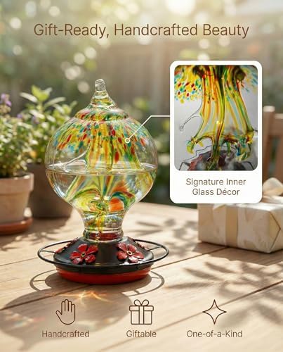【Giftable Handcrafted Glass Art】 A signature inner glass décor turns a feeder into a garden accent. Handcrafted with slight variations, each piece is one of a kind—a gift-worthy choice for mom, bird lovers, gardeners, and backyard hosts.