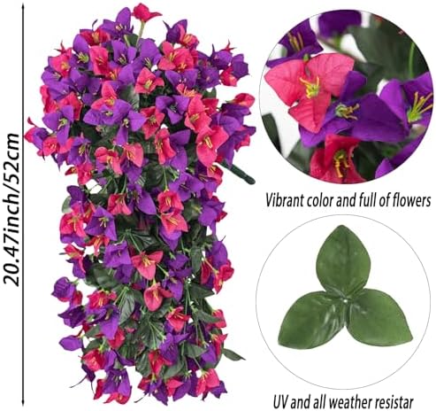 【Botanical Elegance Delivered】Each artificial Bougainvillea Hanging outdoor flowers 52cm/20.47 inches in total length, featuring 12 delicate flower branches per stem for a lush, natural look.Set includes 2 bunchs,Available in 5 elegant colors perfect for matching any decor theme.
