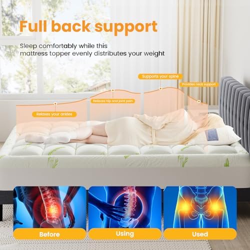 【Superior Comfort & Even Support】Experience the ultimate in plush comfort with our premium foam mattress topper. Designed to perfectly fit your mattress, this mattress pad provides even support and contours to your body, transforming your ordinary mattress into a luxurious sleeping pad. It's the best bedding upgrade for a superior sleep surface.
