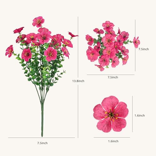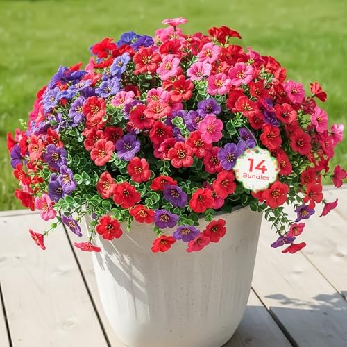 14 Bundles of Artificial Flowers Outdoor: This package includes 14 stems—4 deep purple, 4 purple, 3 red, and 3 rose red. These charming fake flower stems, designed specifically as artificial flowers for outdoors, boast rich, vibrant hues that beautifully enhance your porch, yard, patio, and front door porch, bringing a lively and inviting touch to any outdoor setting