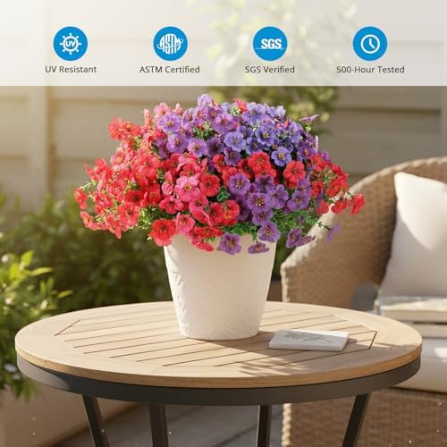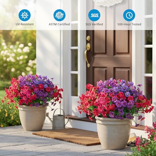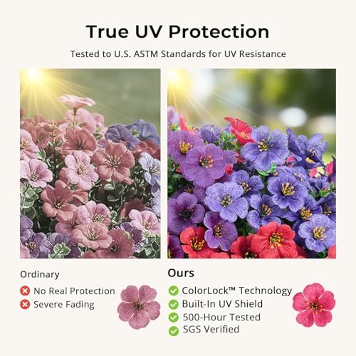 Zero Maintenance & Weatherproof: Made from soft silk flower and weather-resistant materials, our realistic silk flowers for outside need no water, no fertilizer, and no pruning. Even in sun-drenched regions (such as Florida) and arid desert areas, they can still maintain their vibrant colors. While heat kills real blooms, our vibrant spring flowers bring life that never fades