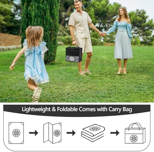 [Portable RV Picnic Rug]: lightweight and portable, easy to fold, with a free storage bag, zero stress on travel storage. Our outdoor circle rug are lightweight design, folded lightweight does not take up space, portable attributes pull full, whether it is self-driving camping, beach vacation, or RV travel, can be easily carried, anytime and anywhere for you to create a comfortable outdoor rest space.