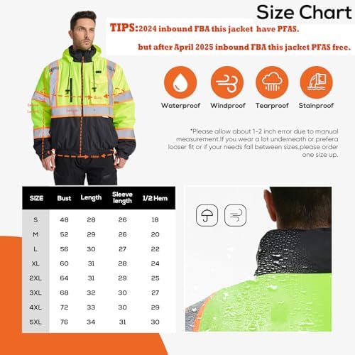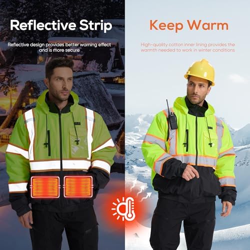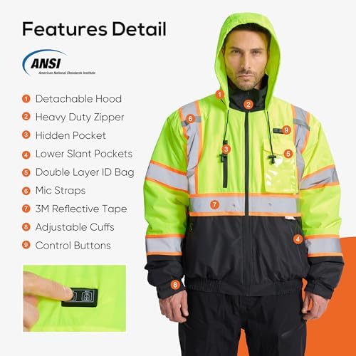 Winter work jackets comply with ASIN CLSS standards:SRsafety high visibility winter bomber jackets have 2 inch wide silver reflective strip sewn on arms, chest, waist and back,Ensures maximum visibility even in low light conditions. Whether you're working at night, in foggy weather or in poorly lit areas, SRsafety security jackets for men will make you stand out and keep you safe