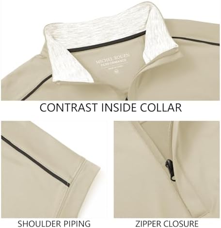 【PREMIUM FABRIC】Our Mens Quarter Zip Pullover is crafted from high-performance 4-way stretch brushed inner jersey fabric, combining polyester and spandex for moisture-wicking, softness, and lightweight comfort, ensuring maximum mobility.