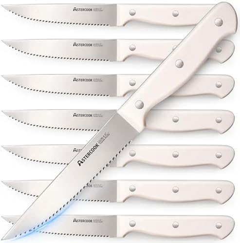 【ELEGANT CREAM AESTHETIC & PERFECT FOR GIFTING】Elevate your tablescape with our steak knives set of 8, featuring a warm, minimalist cream finish that adds modern elegance to any meal. Perfect for daily family dining or hosting guests, this aesthetically pleasing set seamlessly complements any kitchen decor. It's a sophisticated gift for weddings, housewarmings, or culinary enthusiasts who appreciate beauty in every detail