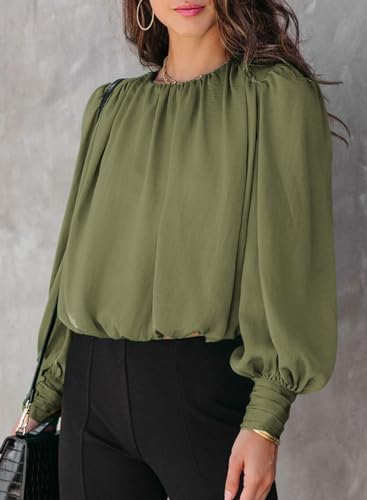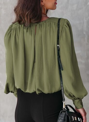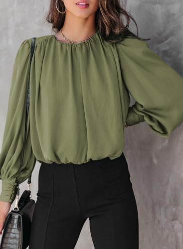 FEATURES: Elegant bohemian women's tops, long sleeve shirts for women made of Casual Crew Neck, Elastic Hem, Button Cuffs, Shoulder Padding and Billowy Fit, combine to bring sexy and sensual wearing style.