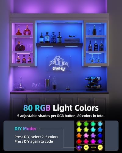 Memory Function & Dynamic Modes: Auto restores last used color, brightness and mode when turned on again. 8 preset theme modes, each with 3 color effects, let you activate dynamic color jumping with a single click. DIY mode allows you to customize your own color combination—select 3–5 colors, then click again to enjoy smooth, seamless color transitions